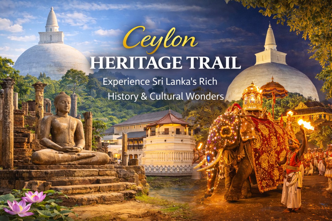 Follow the footsteps of kings and emperors on the Ceylon Heritage Trail, a 7-day cultural journey across Sri Lanka’s most iconic historical landmarks. From the ancient cities of Anuradhapura and Polonnaruwa to the magnificent Sigiriya Rock Fortress, Dambulla Cave Temples, and the sacred Temple of the Tooth in Kandy, this itinerary is crafted for travelers who want to discover the soul of Sri Lanka’s rich heritage.